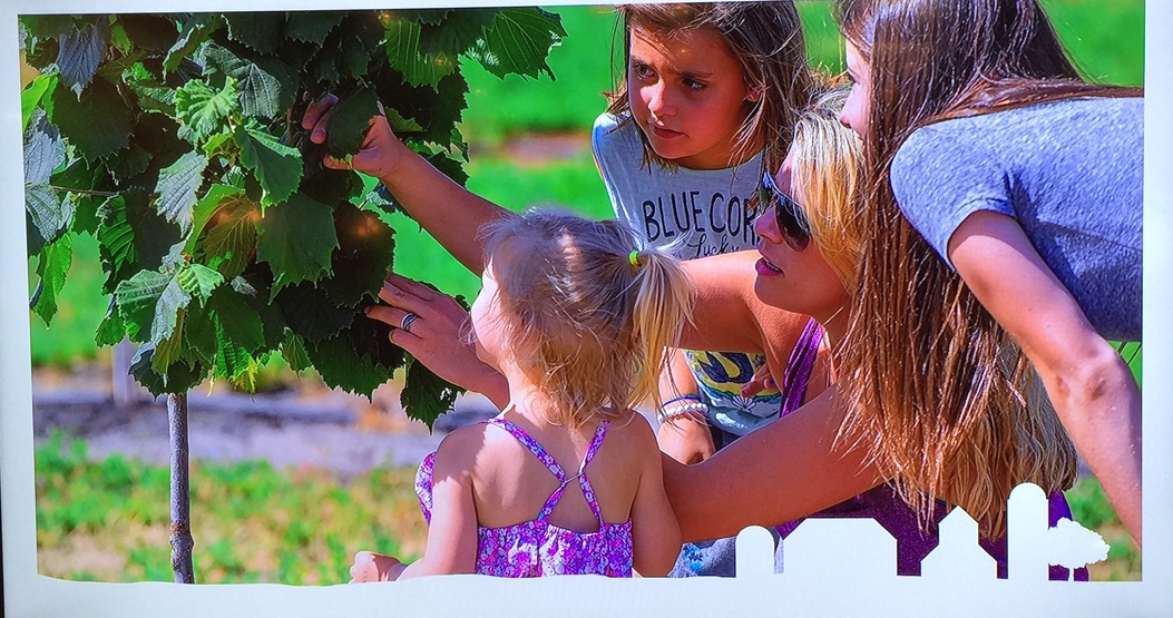 Ashlynn and Sammie Jo are “de-budding” our brand new trees 2 years ago. “De-budding” trees is used to pull off the lower “buds” before they become limbs. Hazelnut “trees” are actually bushes. When we take off the lower “buds” or “limbs”, the tree uses it’s energy on the remaining higher limbs to grow as trees and therefore will produce more nuts for production.